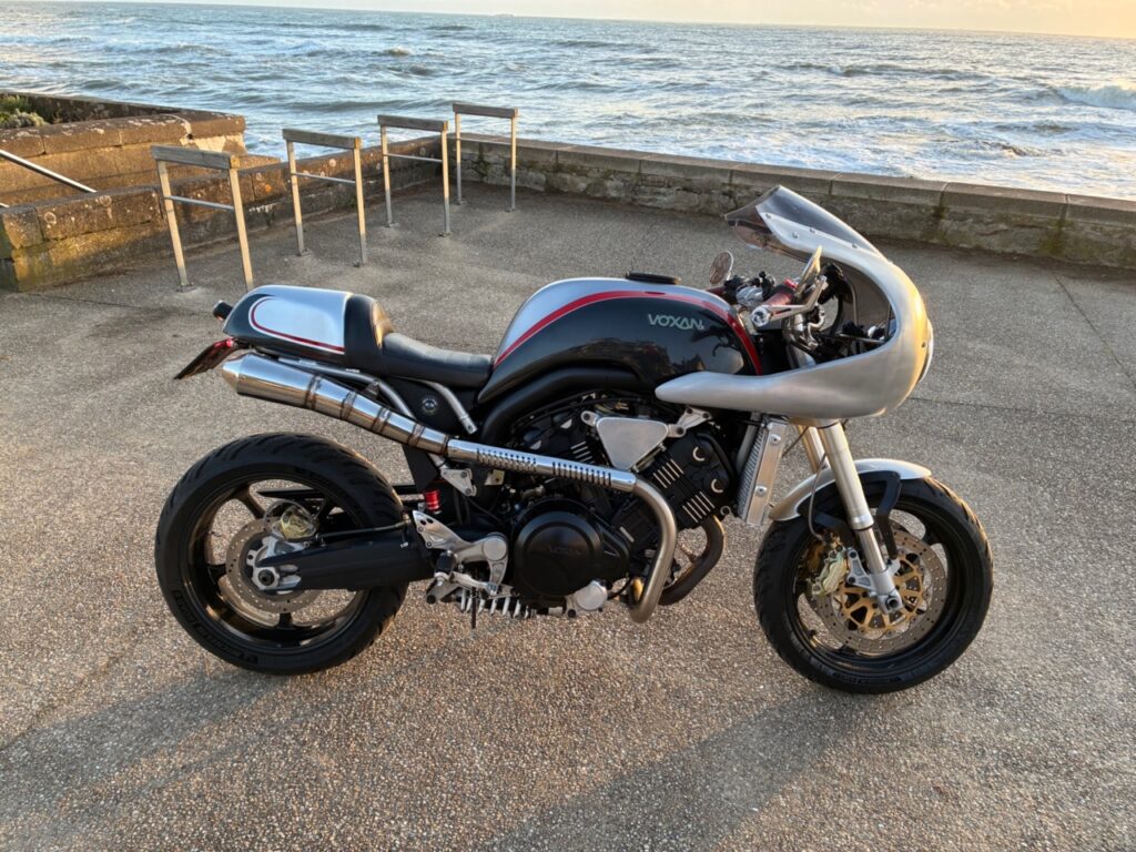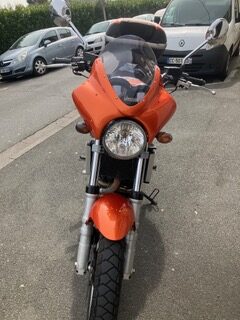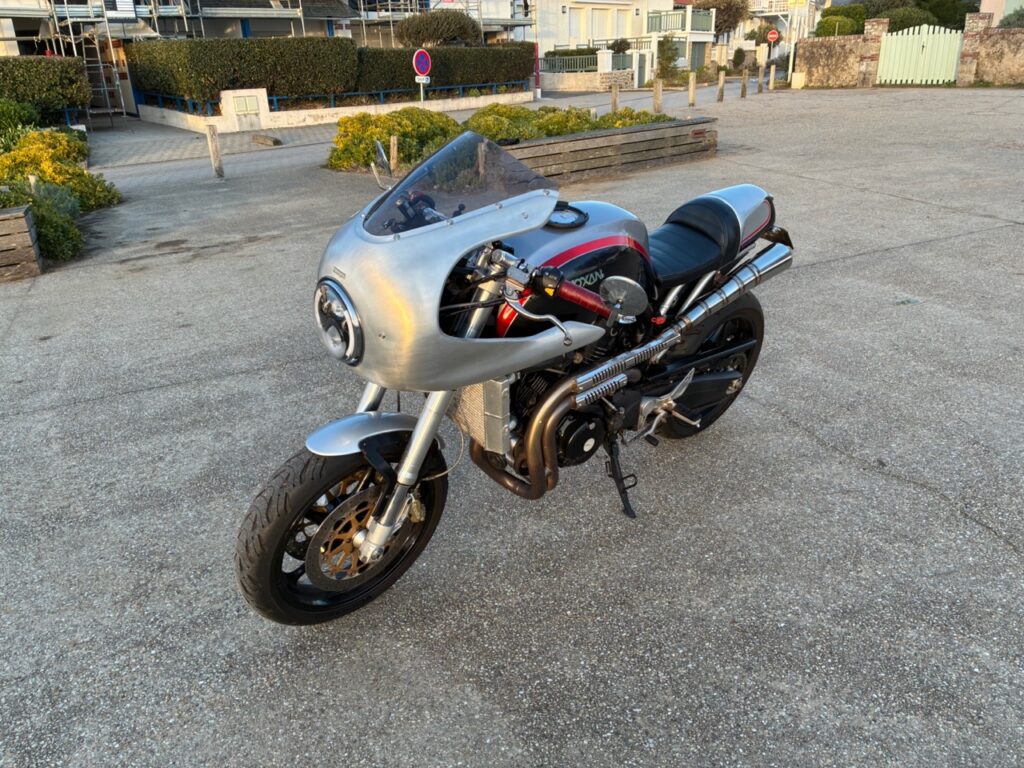 – Tête de fourche en alu façonné main sur mon modèle Thruxton